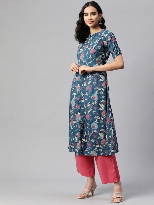 Stylish printed button-down kurti crafted from soft, breathable fabric, featuring a modern floral pattern and a comfortable straight fit. Perfect for casual outings, workwear, and everyday styling.